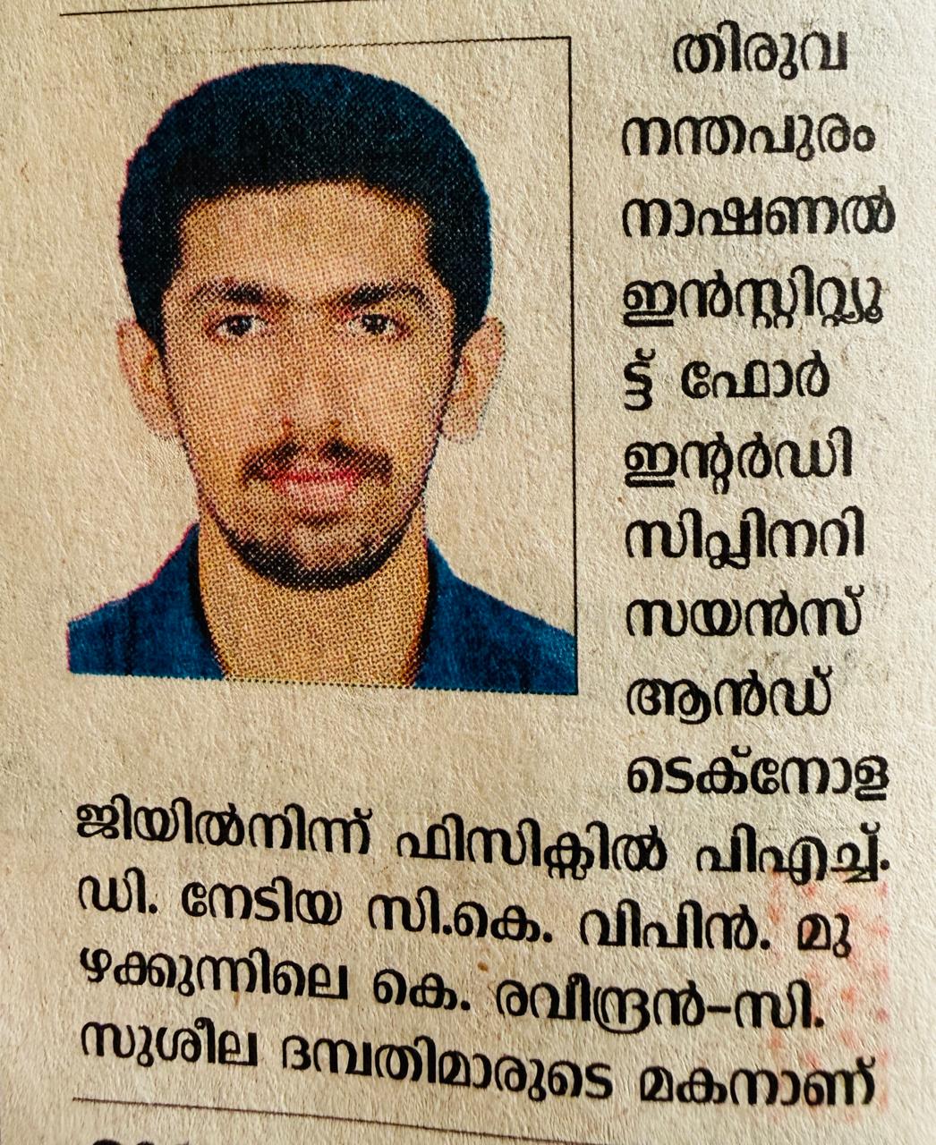 Secured 10th Position in All Kerala Physics Talent Search Examination |