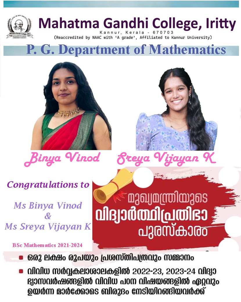 | Alan Kurian (III B Sc Mathematics) |
