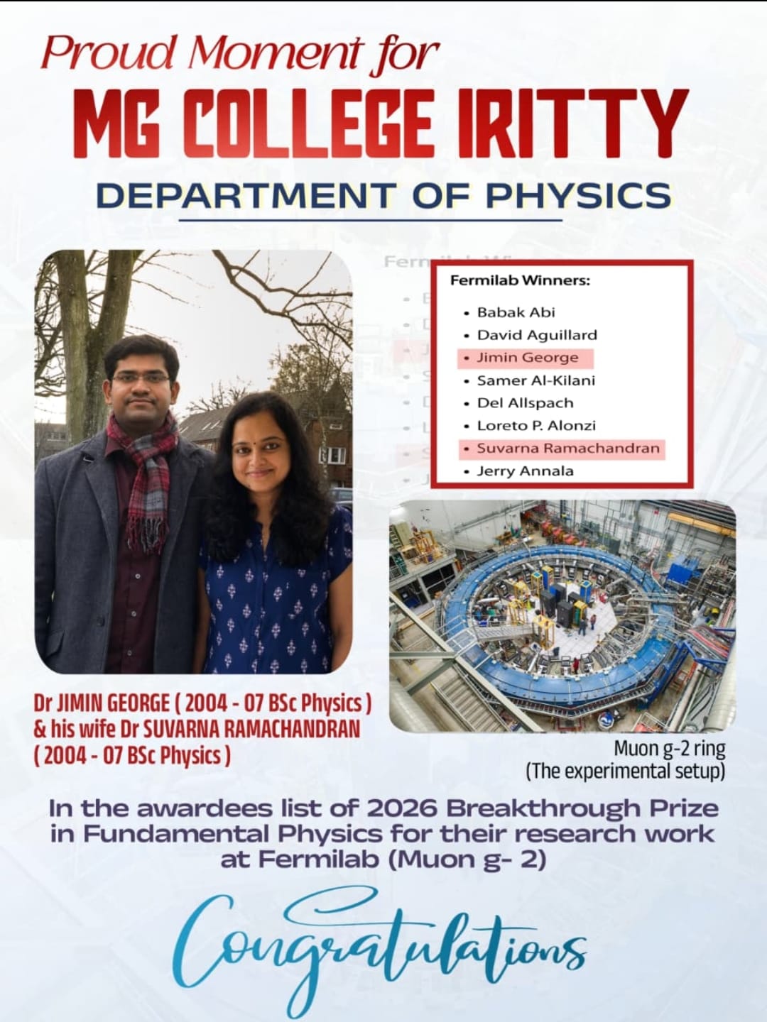 Qualified MG University MSc Physics Entrance Exam and joined there |