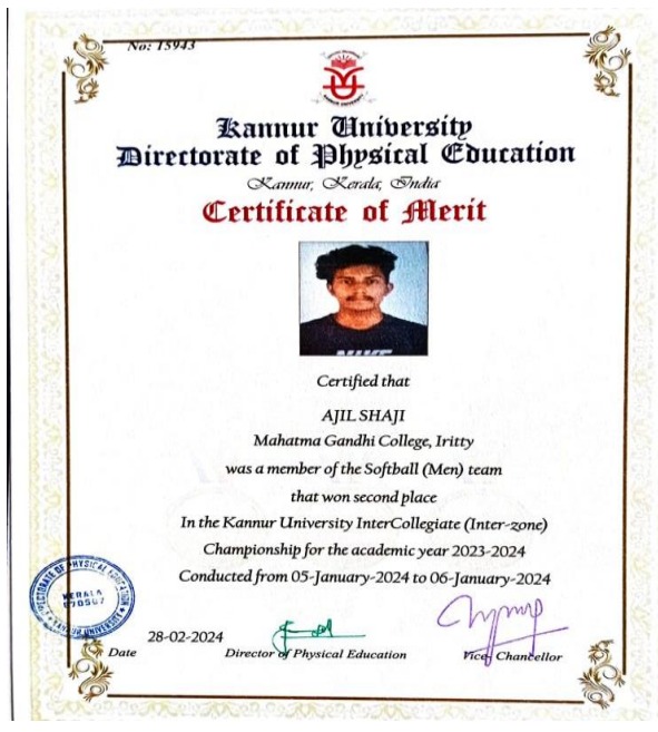 Gold medal in intercollegiate powerlifting championship & selected for inter university championship |