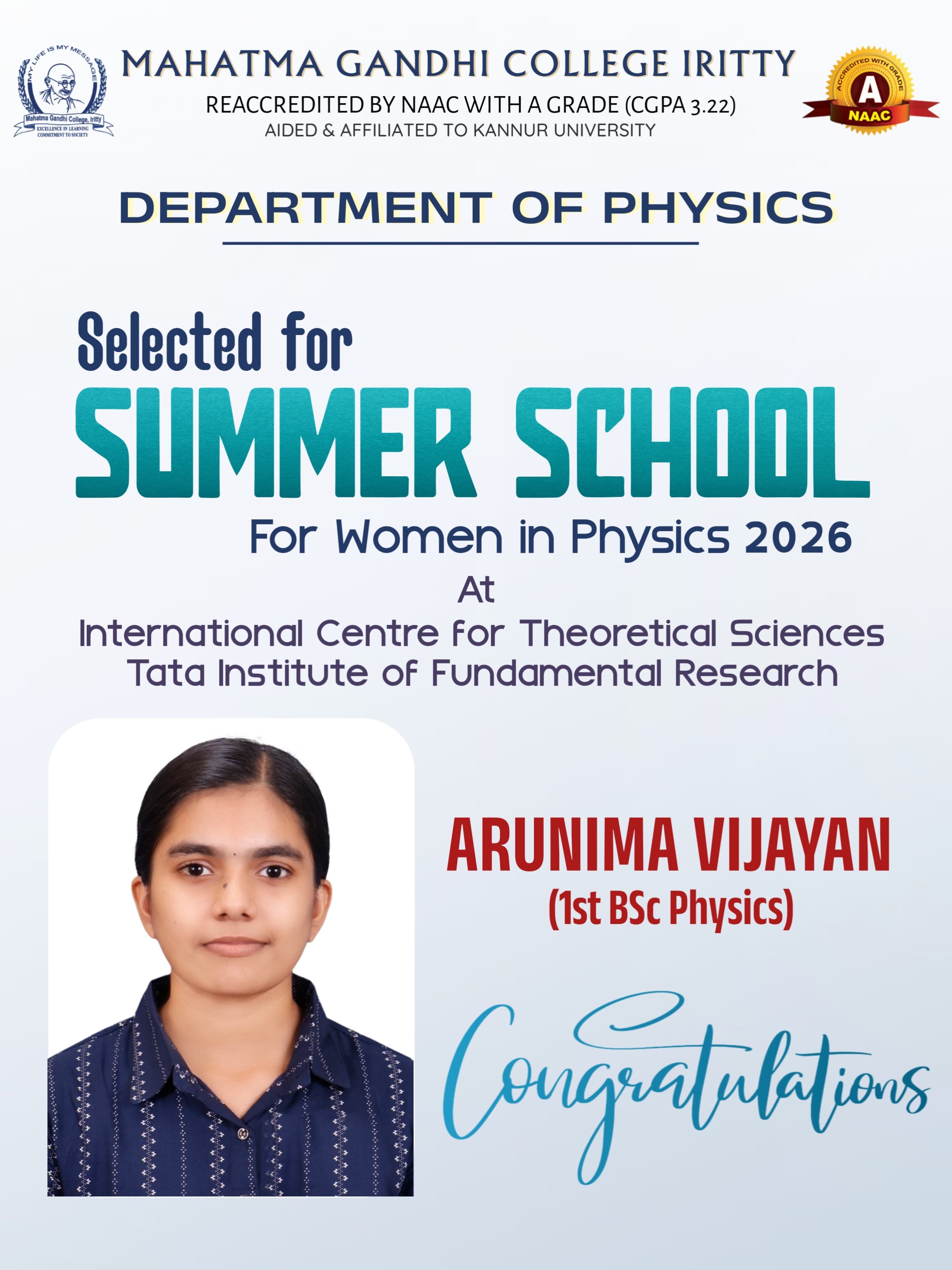 Qualified MG University MSc Physics Entrance Exam and joined there |