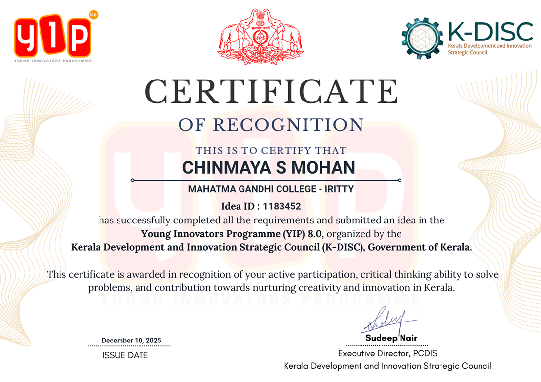 Secured 10th Position in All Kerala Physics Talent Search Examination |